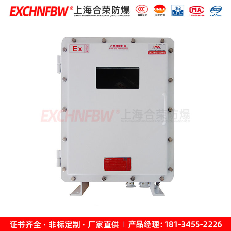 █ A、外殼采用鑄鋁合金壓鑄成型,表面噴塑。主腔采用隔爆型結(jié)構(gòu),接線腔增安型結(jié)構(gòu)。內(nèi)可選配裝斷路器、交流接觸器、熱繼電 器、變壓器、熔斷器、溫控 儀數(shù)顯表等普通低壓元件。Ex防爆控制按鈕、信號燈、轉(zhuǎn)換開關(guān)等。配電箱采用模塊化設(shè)計,各種回路可以自由組合,電器元件選型可 由用戶而定,其結(jié)構(gòu)緊 湊、外形美觀。進出線采用鋼管或電纜布線均可,進出線口方向可由用戶要求而定。